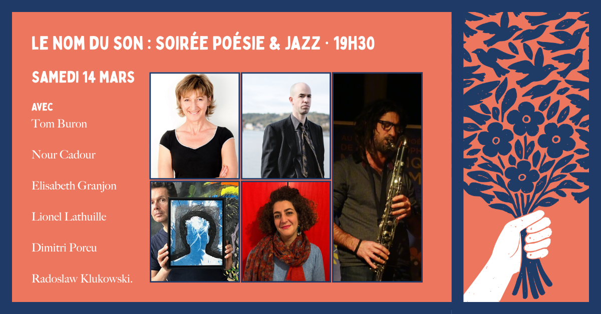 Soirée poésie jazz avec Tom Buron, Nour Cadour, Elisabeth Granjon, Lionel Lathuille, Patrick Laupin, Dimitri Porcu et Radoslaw Klukowski.